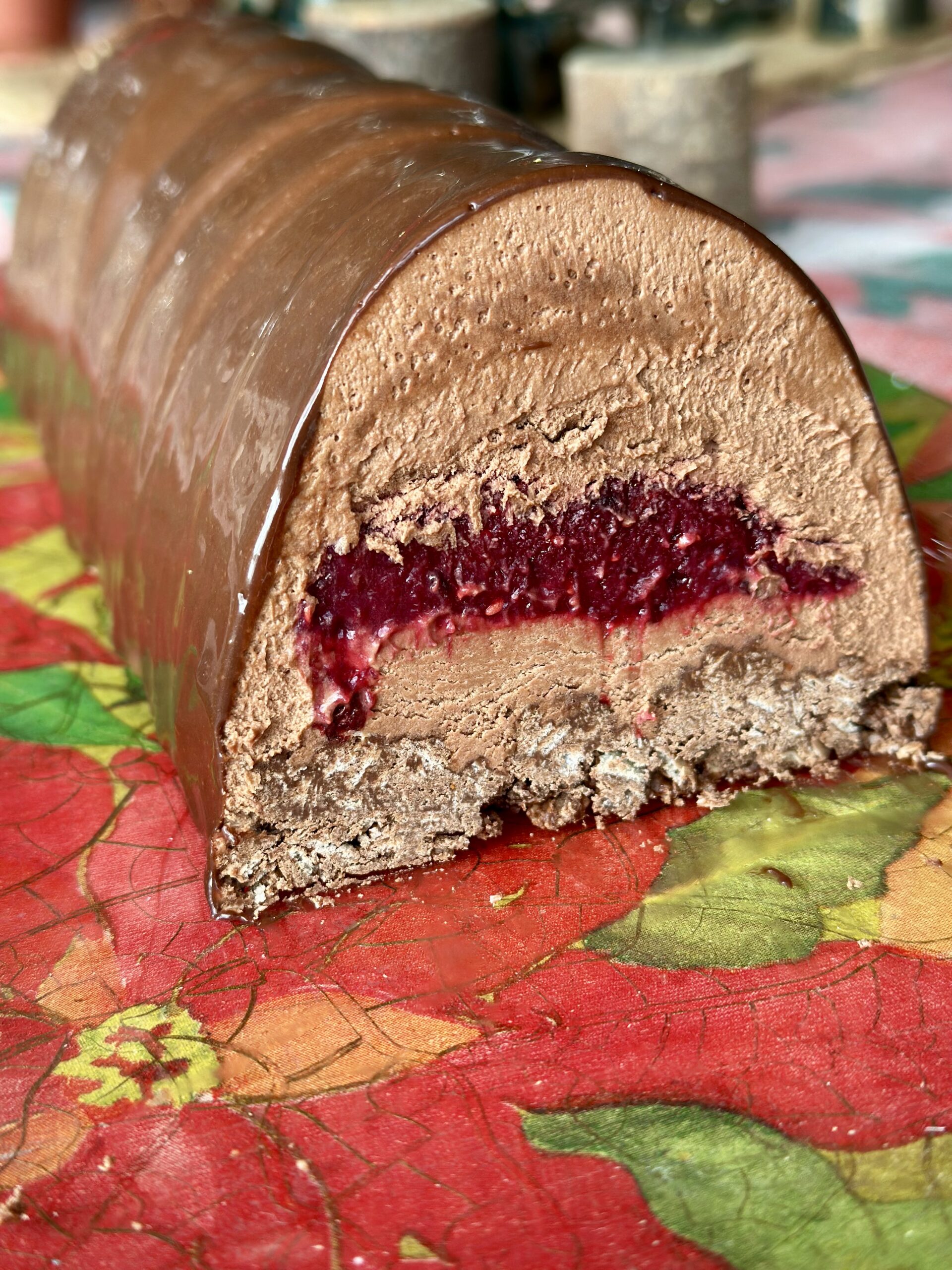 El postre perfecto para las comidas y cenas Navideñas!! Cremosa mousse de chocolate con centro de frutos rojos y crujiente casero a base de nutella y obleas. No te quedes sin él TRIUNFARÁS!!